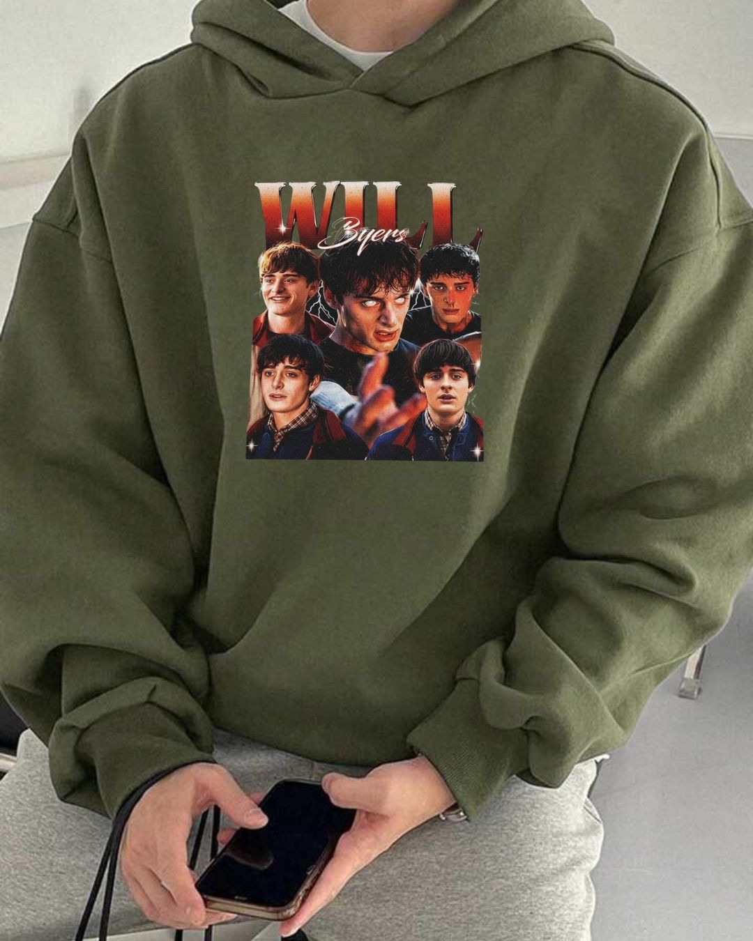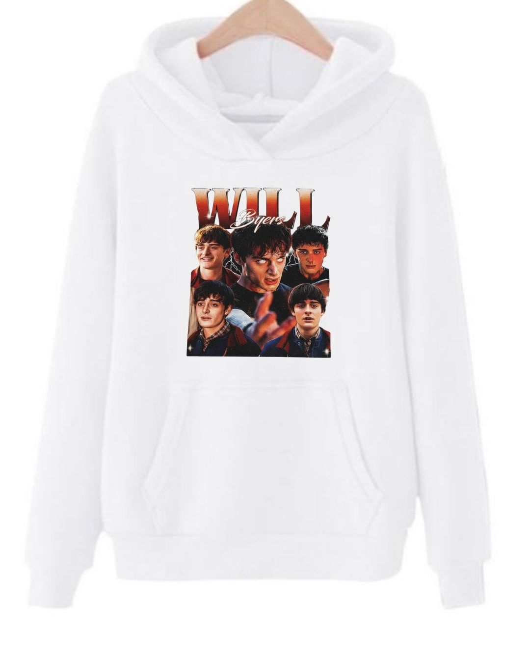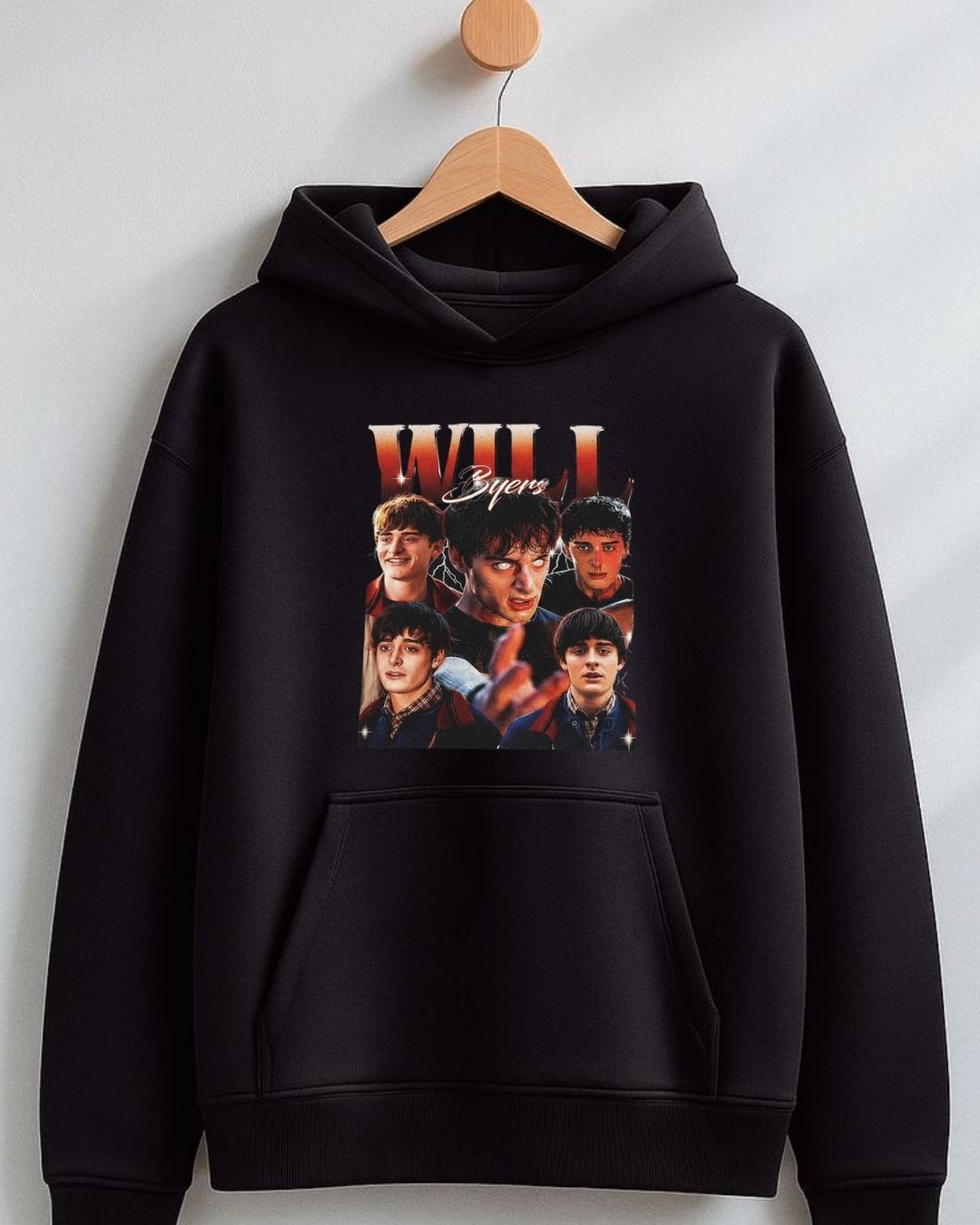 Style: Stranger Things - inspired pullover hoodie, simple yet bold with a cozy hood for cooler days
